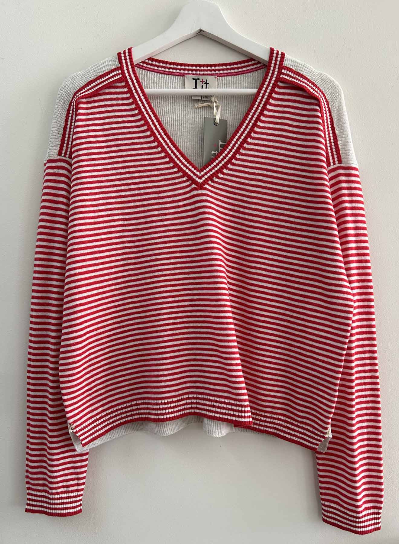 Danni Rib Back Vee - Red/white