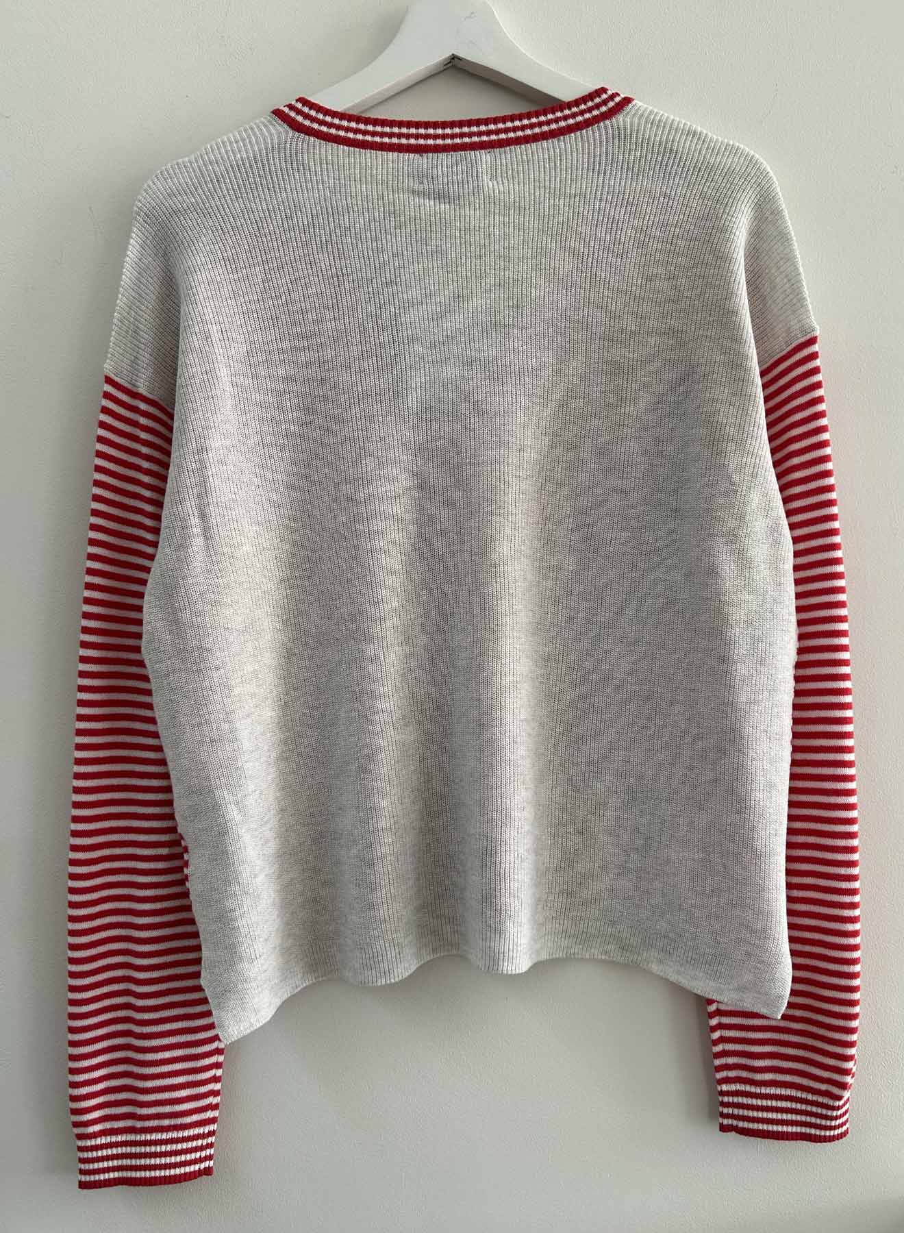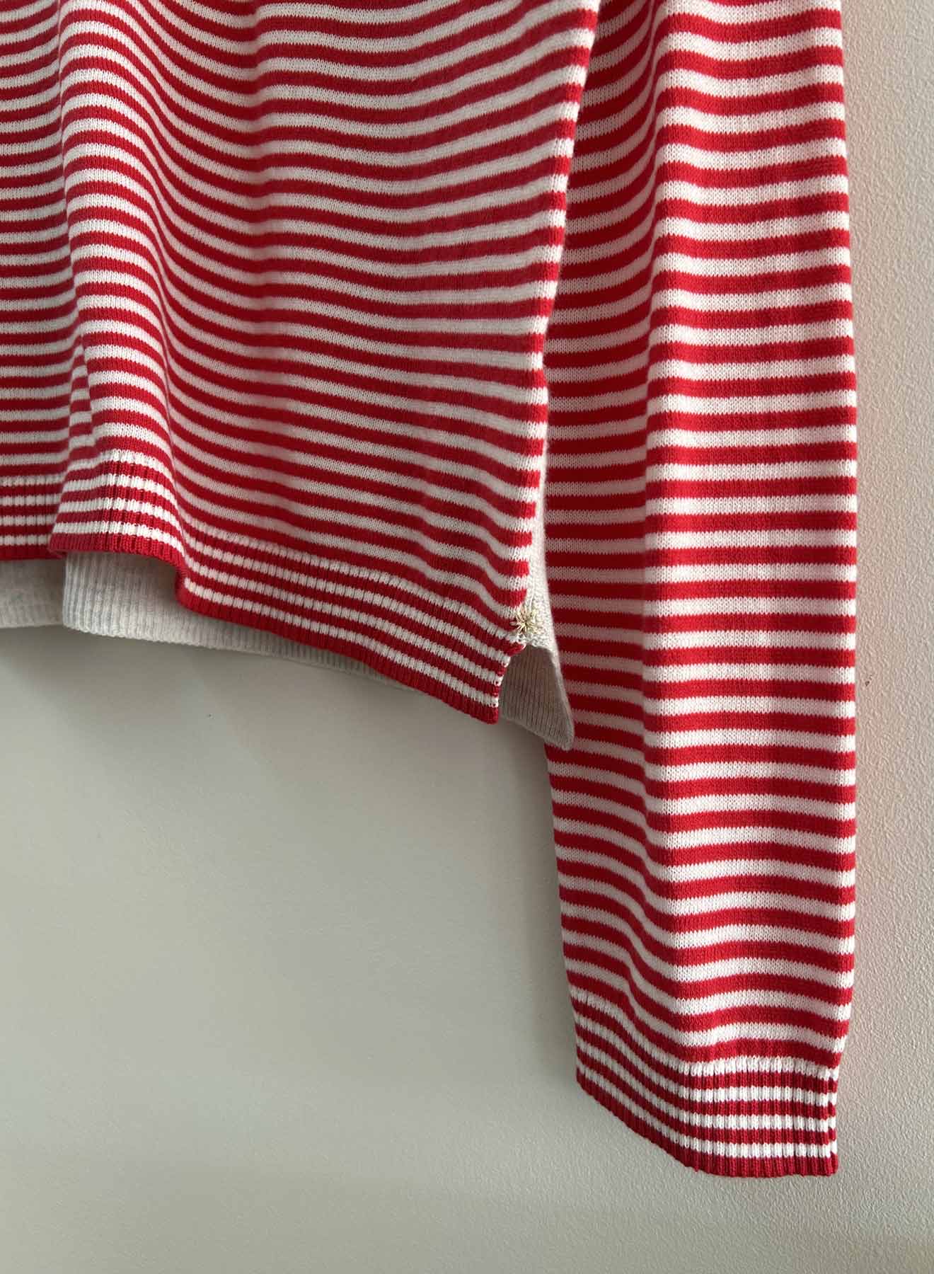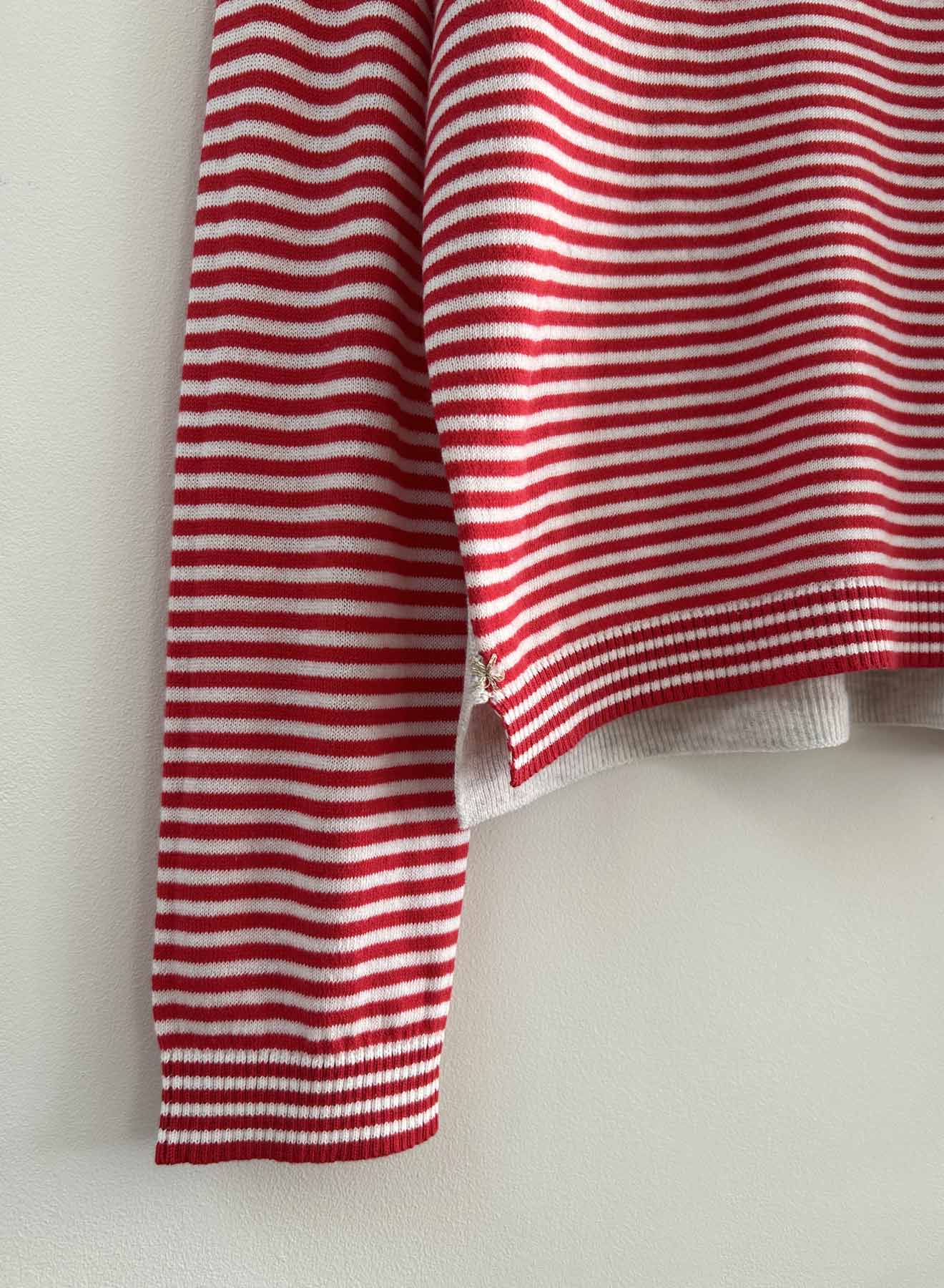 The Danni Rib Back Vee is a loose fitting cotton vee with a contrasting back in a textural rib construction. The back extends forward onto the shoulder with rib trim on the yoke. A high-low hem and stacked lurex x-stitches on select seams. The Danni is available with a solid front as well as a mini striped front - both equally cute and necessary in your closet!