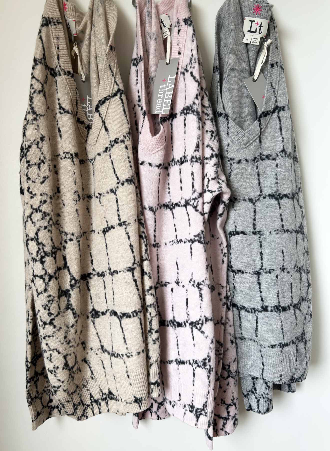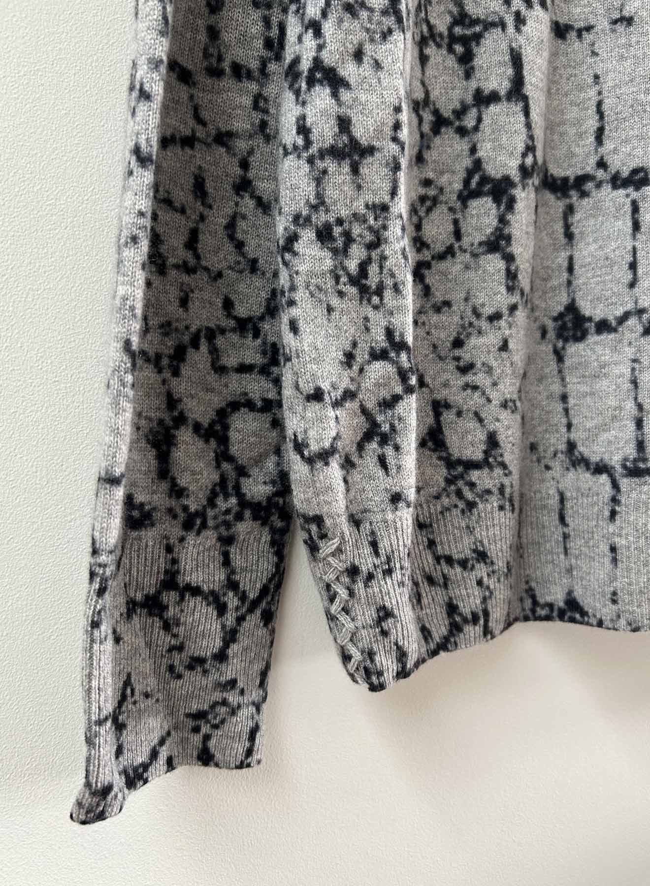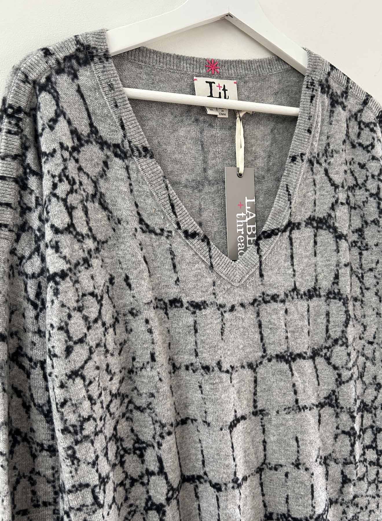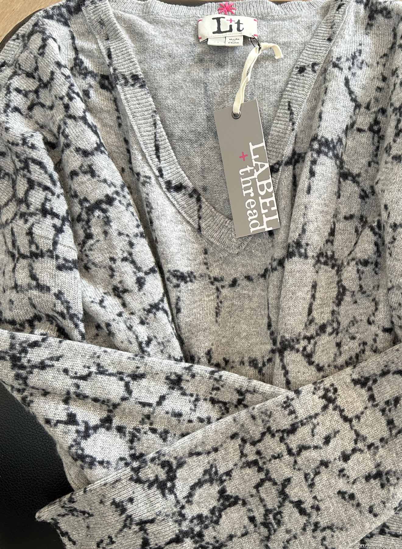 Tired of camo and Big Cat prints yet? Try this ultra chic all over Croc pattern to change it up a bit. Stylized and distressed to a point of near abstraction. Skip the Croc Clutch and wear it instead! Made from 100% cashmere in our CORE Collection Boyfriend Vee silhouette. With its relaxed roomy fit, drop shoulder, high ribs and flattering v-neck, this style is a versatile novelty option any day of the week.