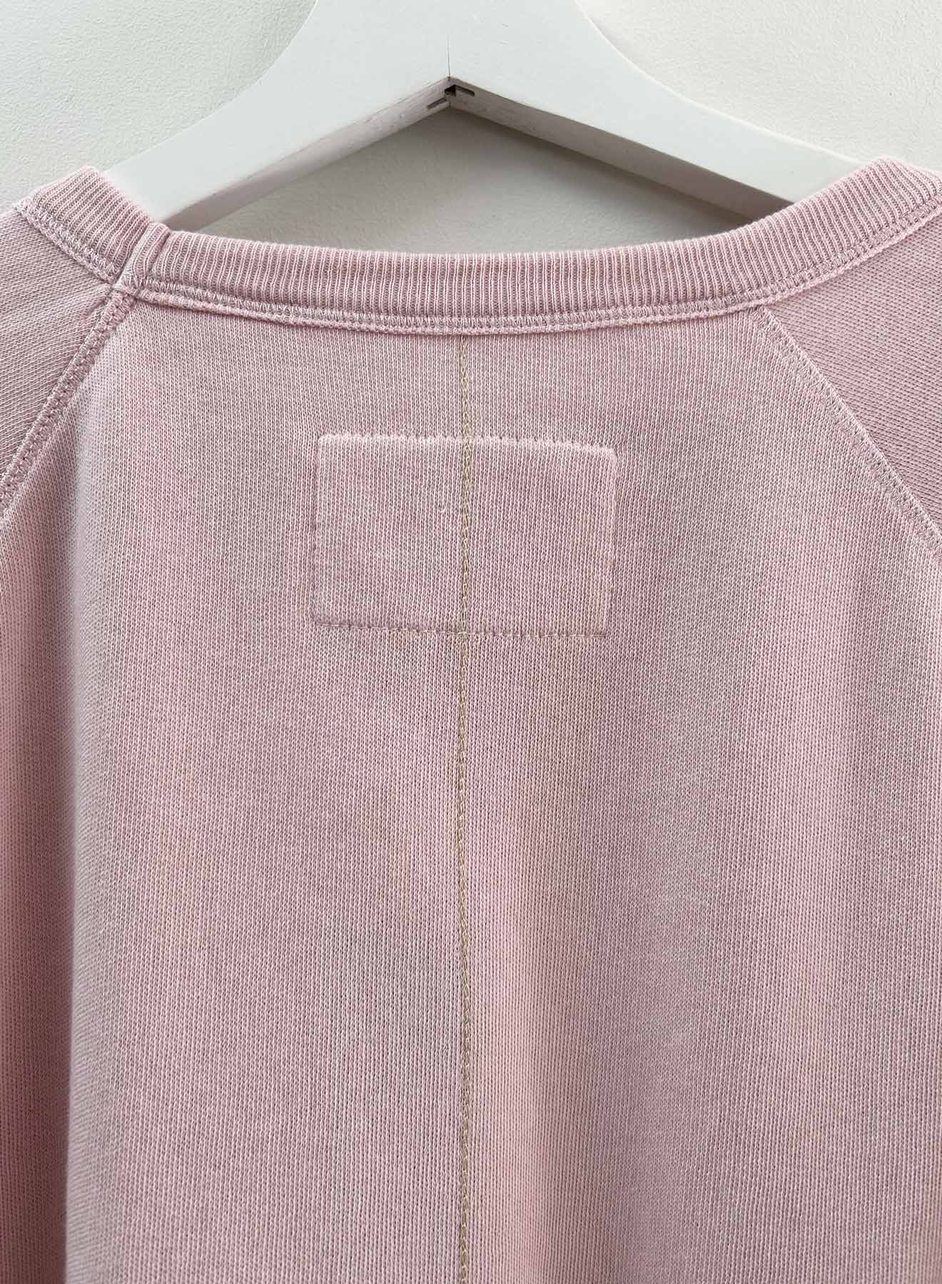 The Cabin Sweatshirt is a chameleon top that straddles the gap between comfortable sweat lounging and casual everyday dressing. Wear back to the Summit Sweatpant or pair it with denim and boots for a casual brunch or weekend in the mountains. Made from our loop-back French terry fabric and garment washed to give the articulated seaming a special lived-in look. Sleeve seam is pitched forward and darted for a casually tailored line. Sleeve is roomy and extra long for a slouchy attitude. Shiny tonal cover stitch reinforces as well as brings attention to seaming and details. Shiny reverse chain stitch in Ecru color on select seams links the Cabin Sweatshirt to the Slub Collection for easy mix-and-matching.