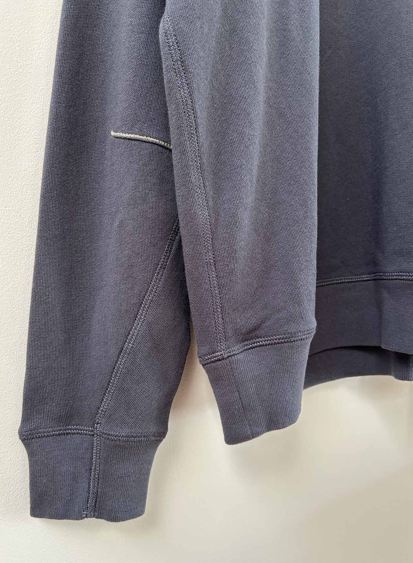 The Cabin Sweatshirt is a chameleon top that straddles the gap between comfortable sweat lounging and casual everyday dressing. Wear back to the Summit Sweatpant or pair it with denim and boots for a casual brunch or weekend in the mountains. Made from our loop-back French terry fabric and garment washed to give the articulated seaming a special lived-in look. Sleeve seam is pitched forward and darted for a casually tailored line. Sleeve is roomy and extra long for a slouchy attitude. Shiny tonal cover stitch reinforces as well as brings attention to seaming and details. Shiny reverse chain stitch in Ecru color on select seams links the Cabin Sweatshirt to the Slub Collection for easy mix-and-matching.