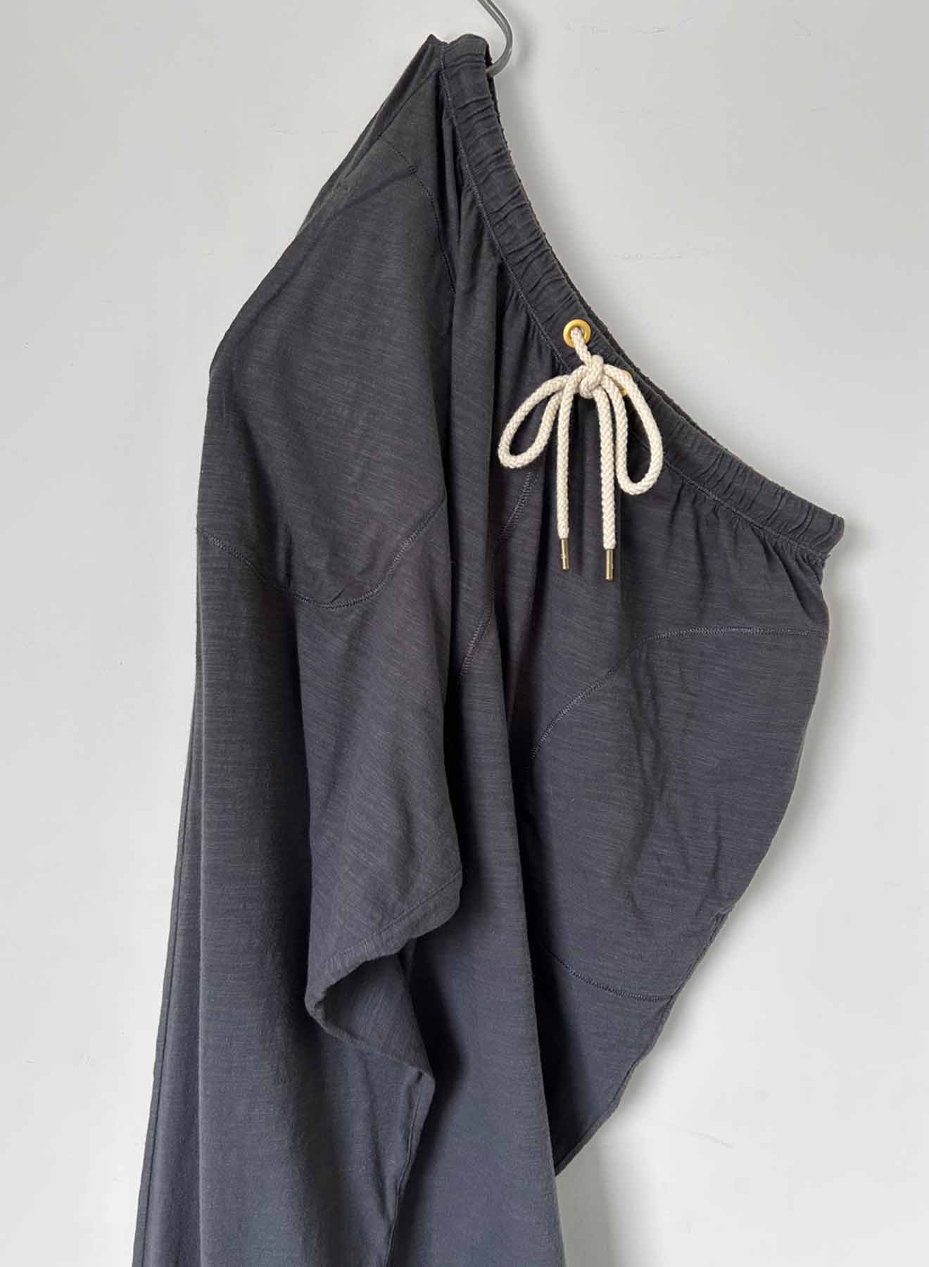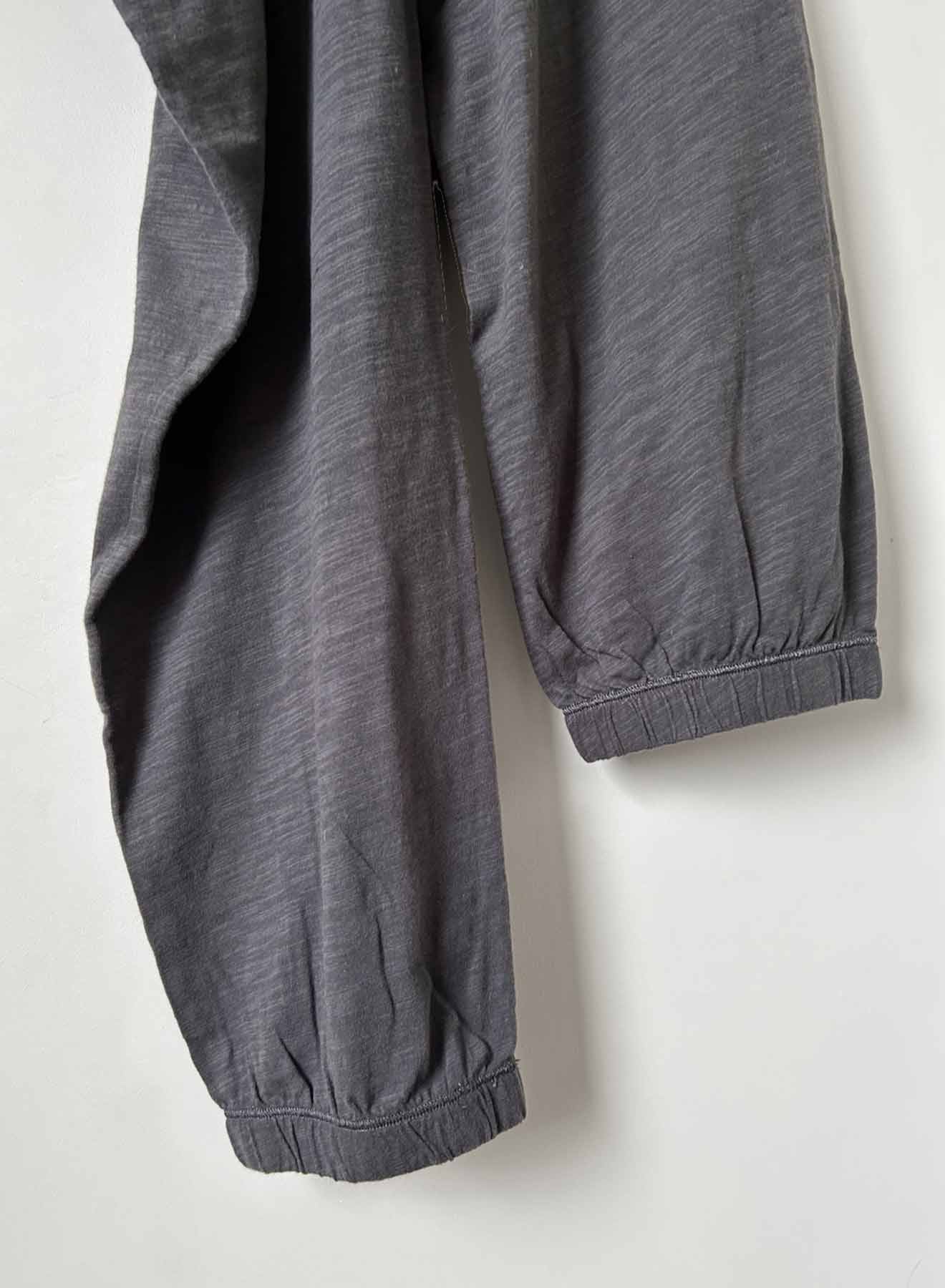The great thing about the Jerri Lounge Pant is that you can do so much more than just lounge in it! Designed with life in mind, it features on-seam side pockets for when all other storage seems out of reach. Two big back patch pockets double as coverage and a place to put the smaller things when on the go. Matte gold grommets and a tightly woven drawstring tipped with metal tips. The waistband features interior elastic, a detail essential to a securely fitting pull-on pant. The fit is relaxed with a high rise that allows you to wear it at the waist for a moderately slouchy look. You can also opt to wear it low riding with a dropped rise for a super slouchy fit The saddle is reinforced with a shaped and seamed gusset. Made from our washed cotton slub jersey with a firm, soft hand that only gets better with every wash. Tonal cover stitching and design identity match our Ava and Rebel tees.