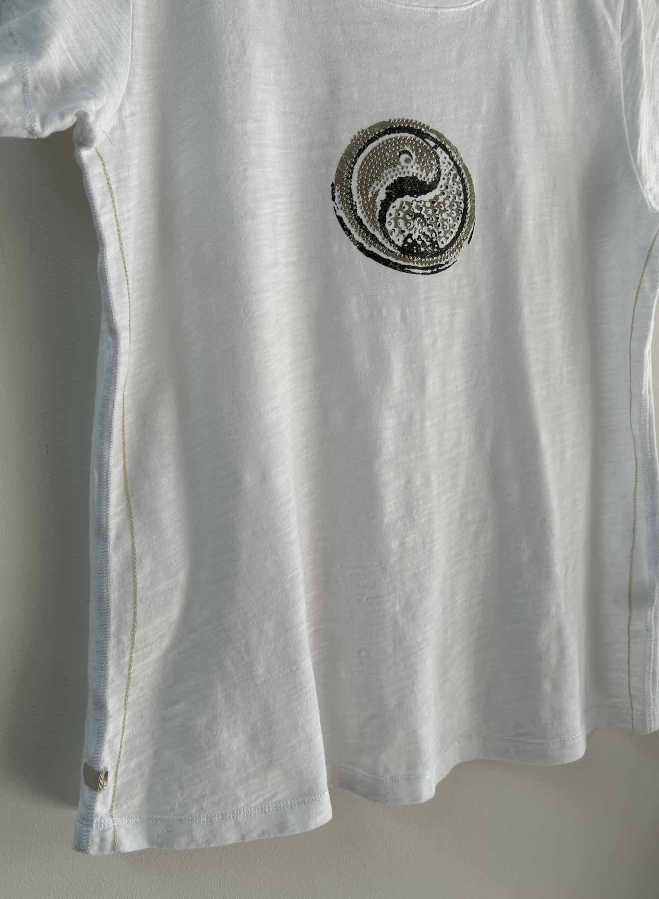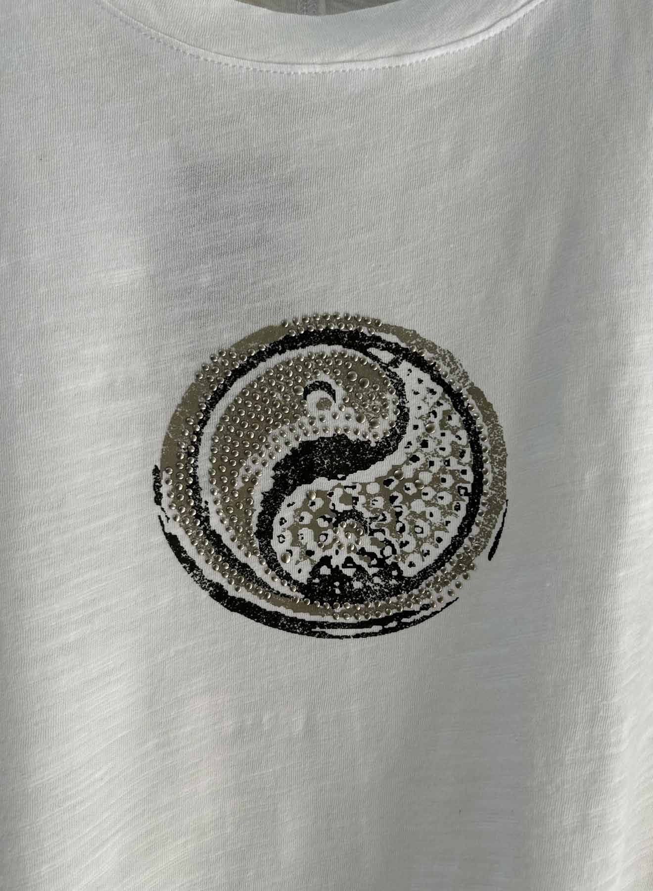 Our Crystal Tees are designed and crafted in our studio in NYC. Light hearted themes are layered and scattered over your favorite knits. Mixed metals and brilliant crystals reflecting the light and our most current whims and thoughts.