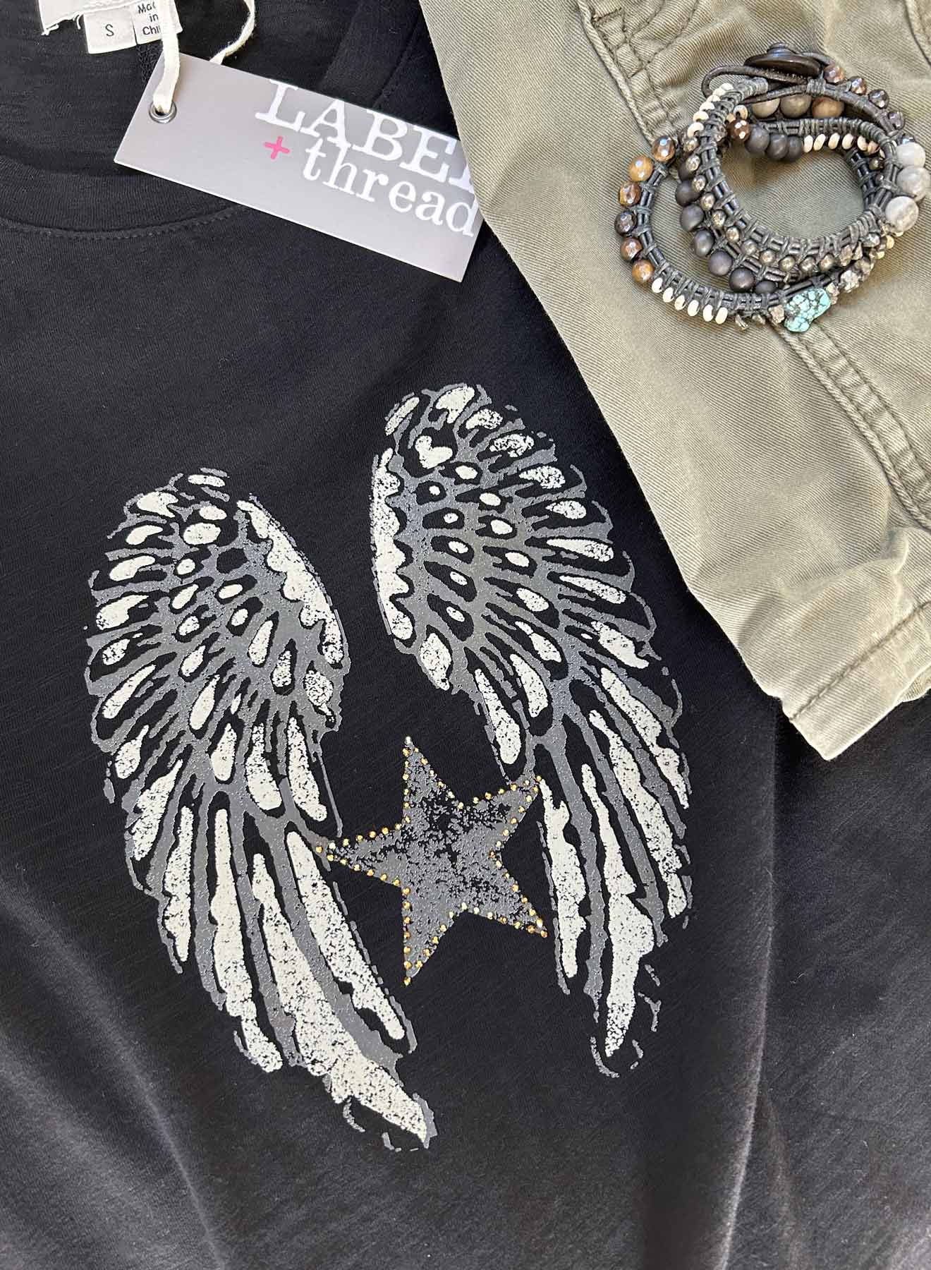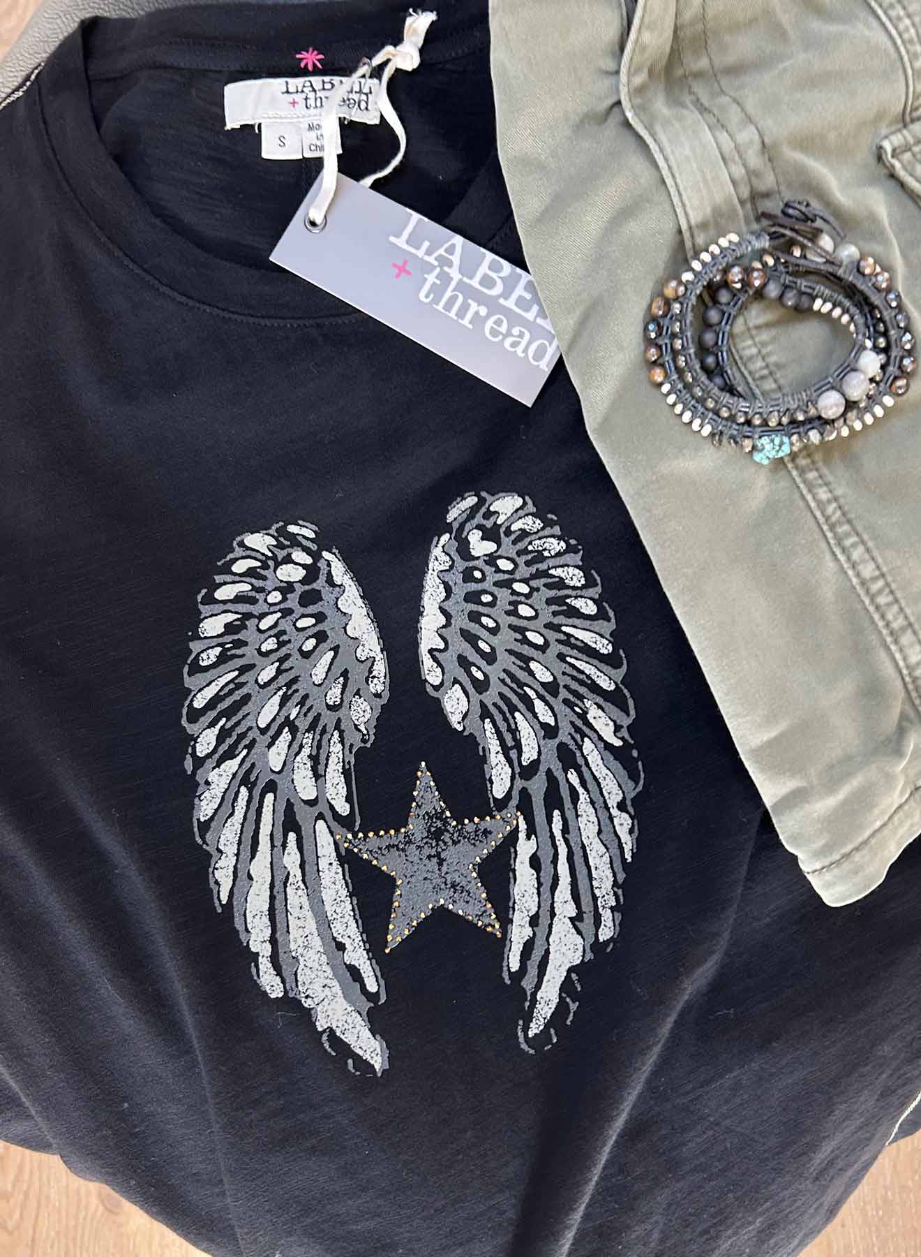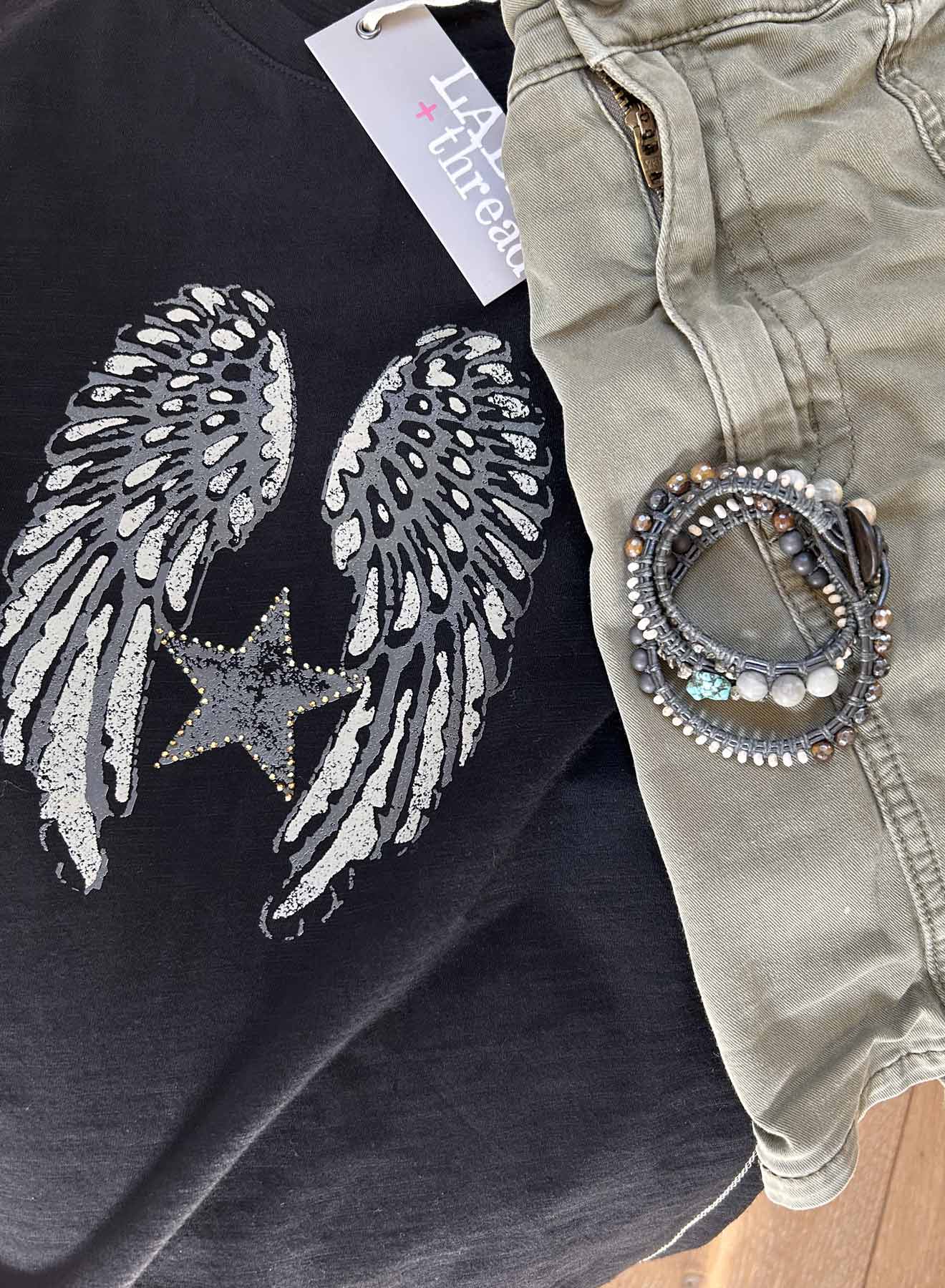 Our Crystal Tees are designed and crafted in our studio in NYC. Light hearted themes are layered and scattered over your favorite knits. Mixed metals and brilliant crystals reflecting the light and our most current whims and thoughts.