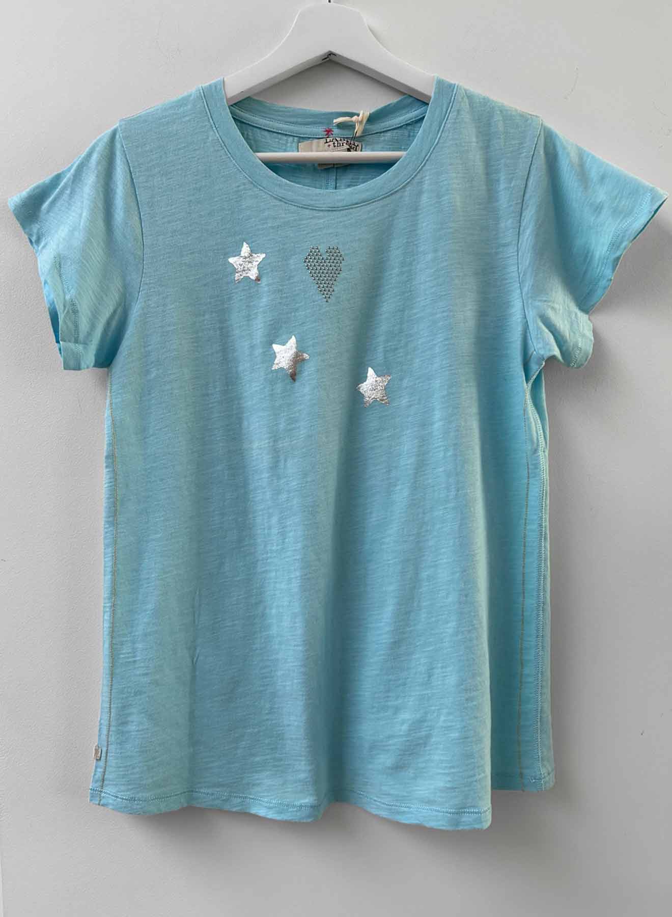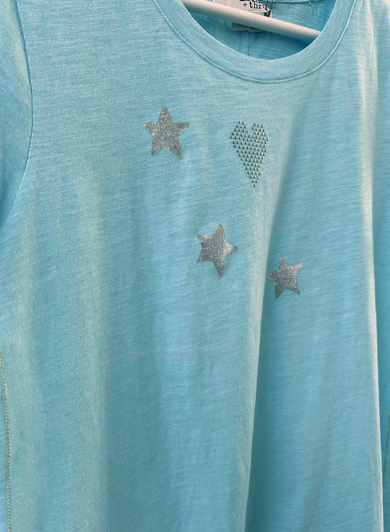 Our Crystal Tees are designed and crafted in our studio in NYC. Light hearted themes are layered and scattered over your favorite knits. Mixed metals and brilliant crystals reflecting the light and our most current whims and thoughts.