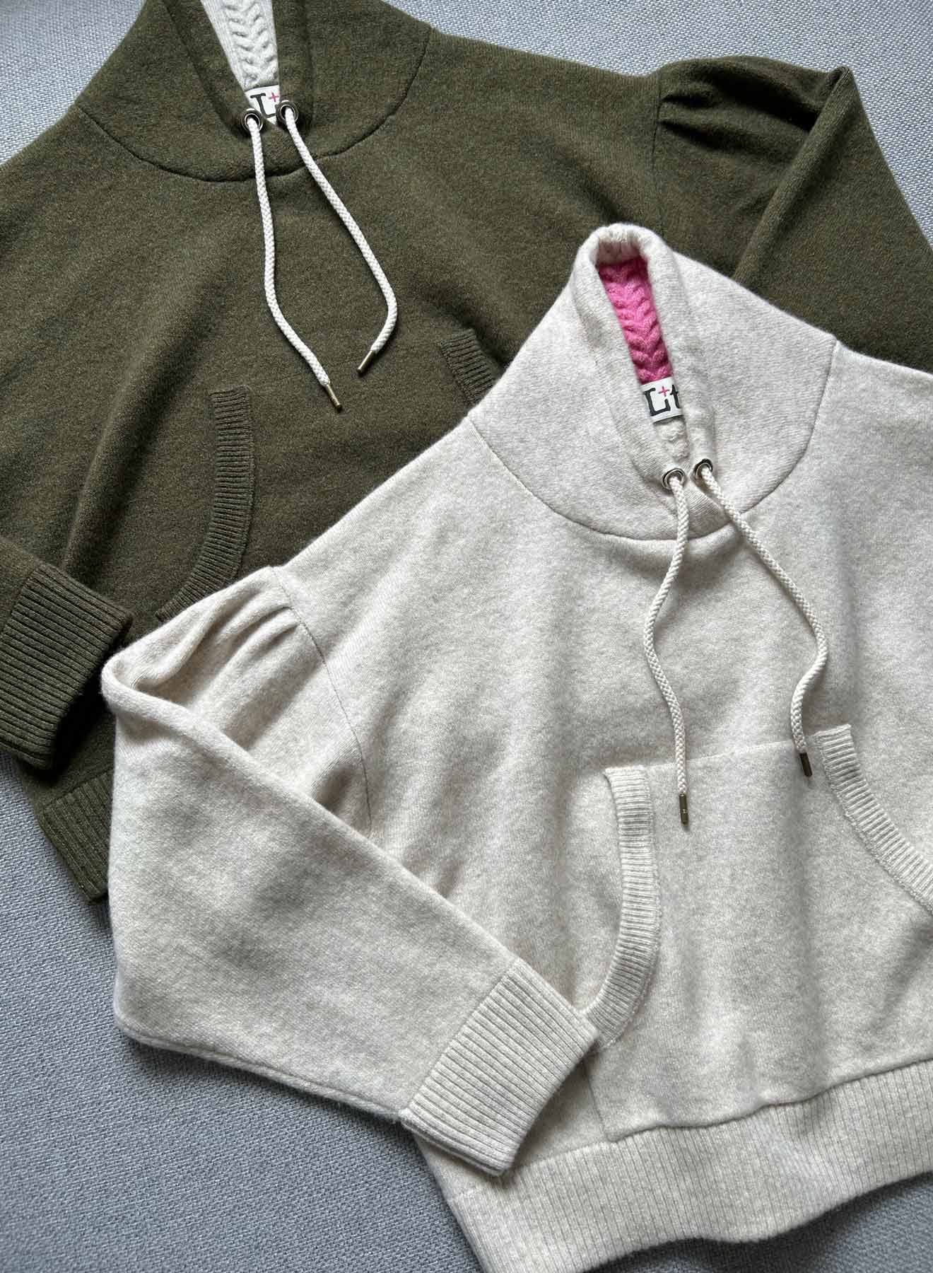 The Madison Lounger is crafted from a wool-cashmere stretch yarn. Designed with a luxurious high neck with pop color, and pleated sleeves at the armhole for soft volume. Metal grommets and corded tie work back to the LIFEstyle+ Collection. Finished in a cropped silhouette, its cozy, contemporary, and endlessly versatile.