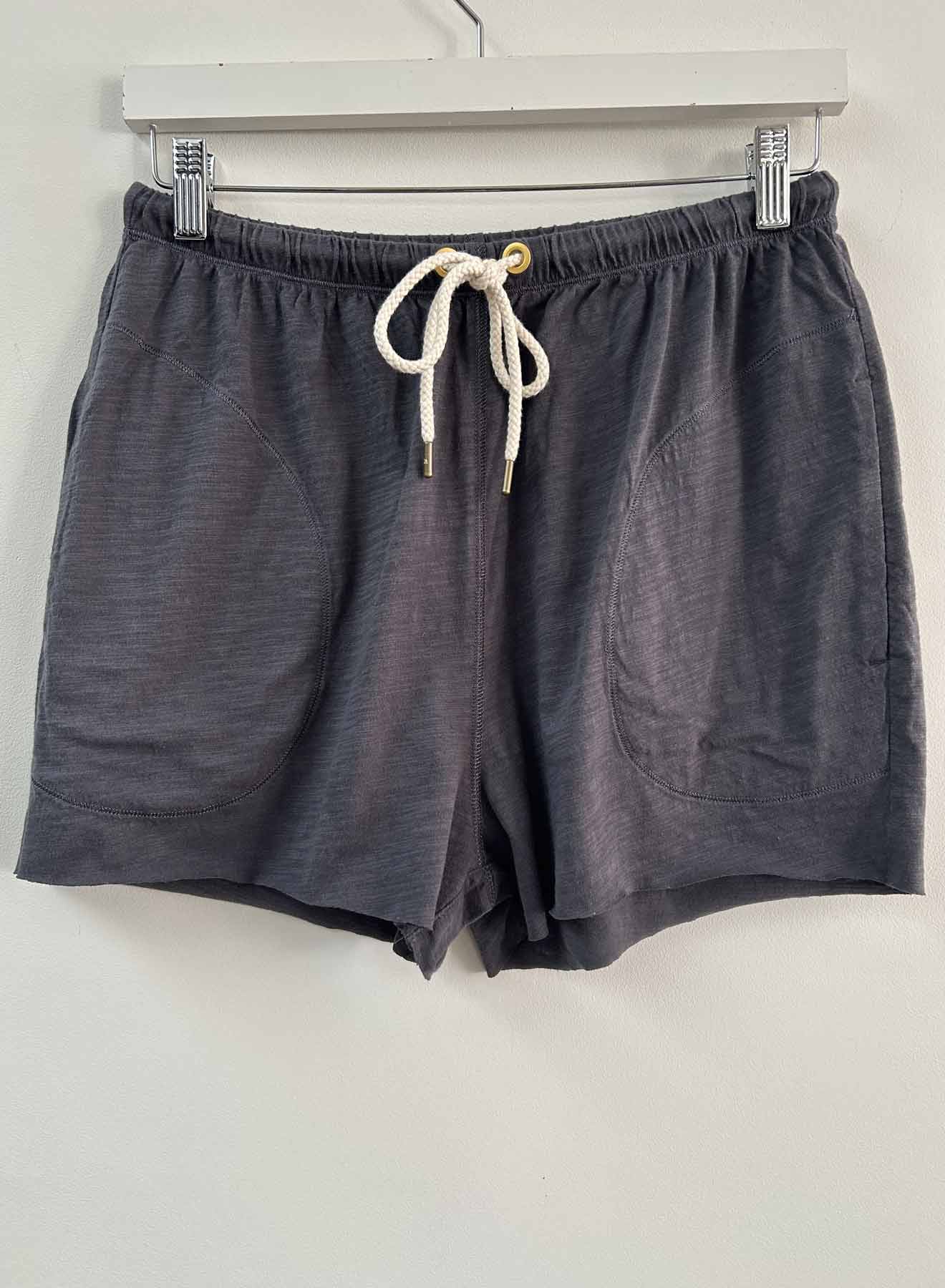 The Tommy Short is designed with life in mind, it features on-seam side pockets for when all other storage seems out of reach. Two big back patch pockets double as coverage and a place to put the smaller things when on the go. Matte gold grommets and a tightly woven drawstring tipped with metal tips. Interior elastic at the waistband, and raw cut edges at the bottom. The fit is relaxed with a high rise that allows you to wear it at the waist for a moderately slouchy look. You can also opt to wear it low riding with a dropped rise for a super slouchy fit. Made from our washed cotton slub jersey with a firm, soft hand that only gets better with every wash. Tonal cover stitching and design identity match our Ava and Rebel tees.