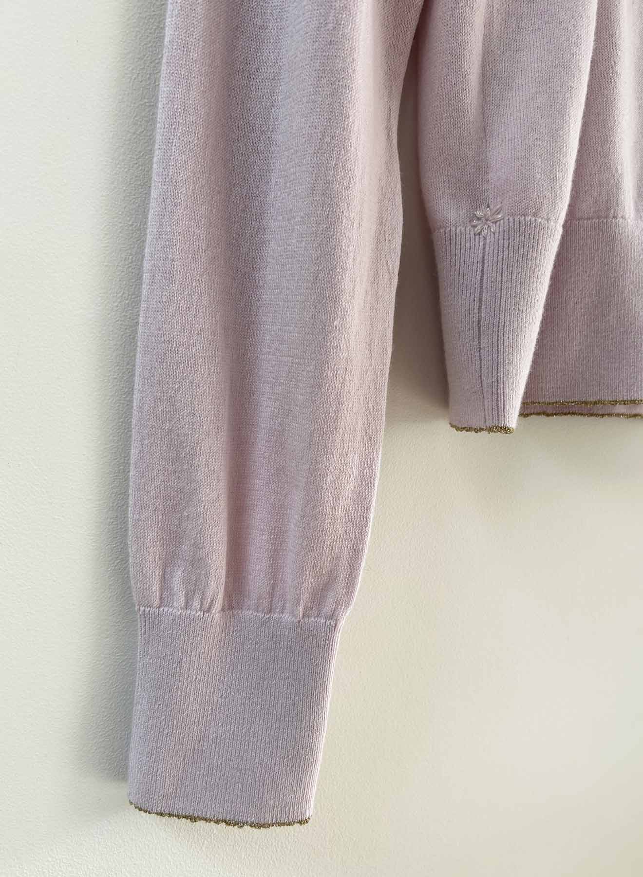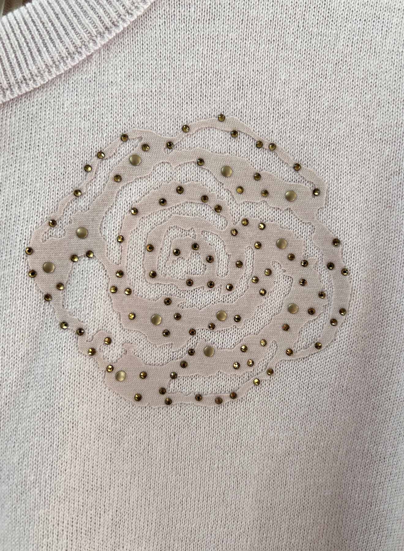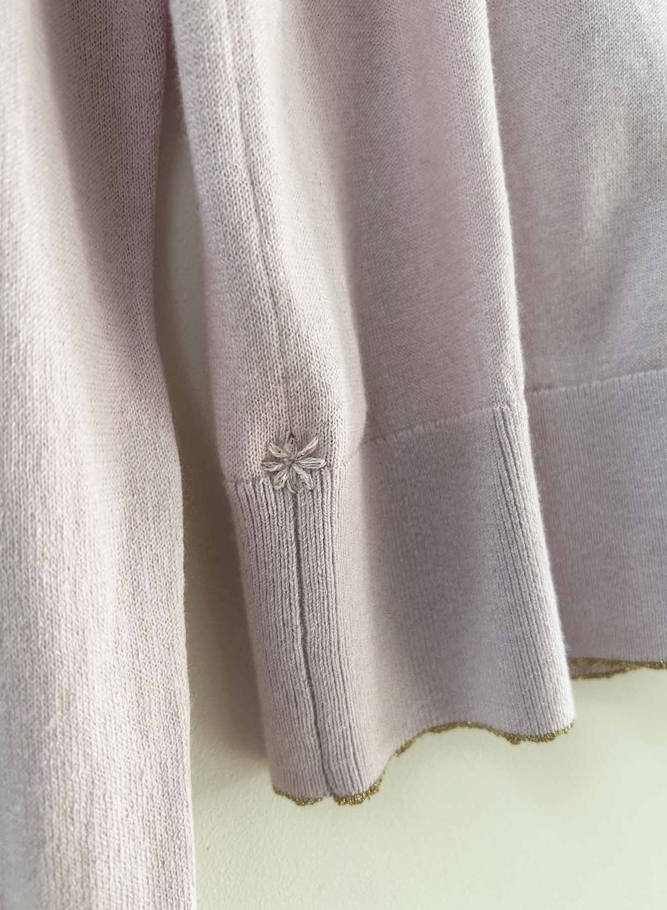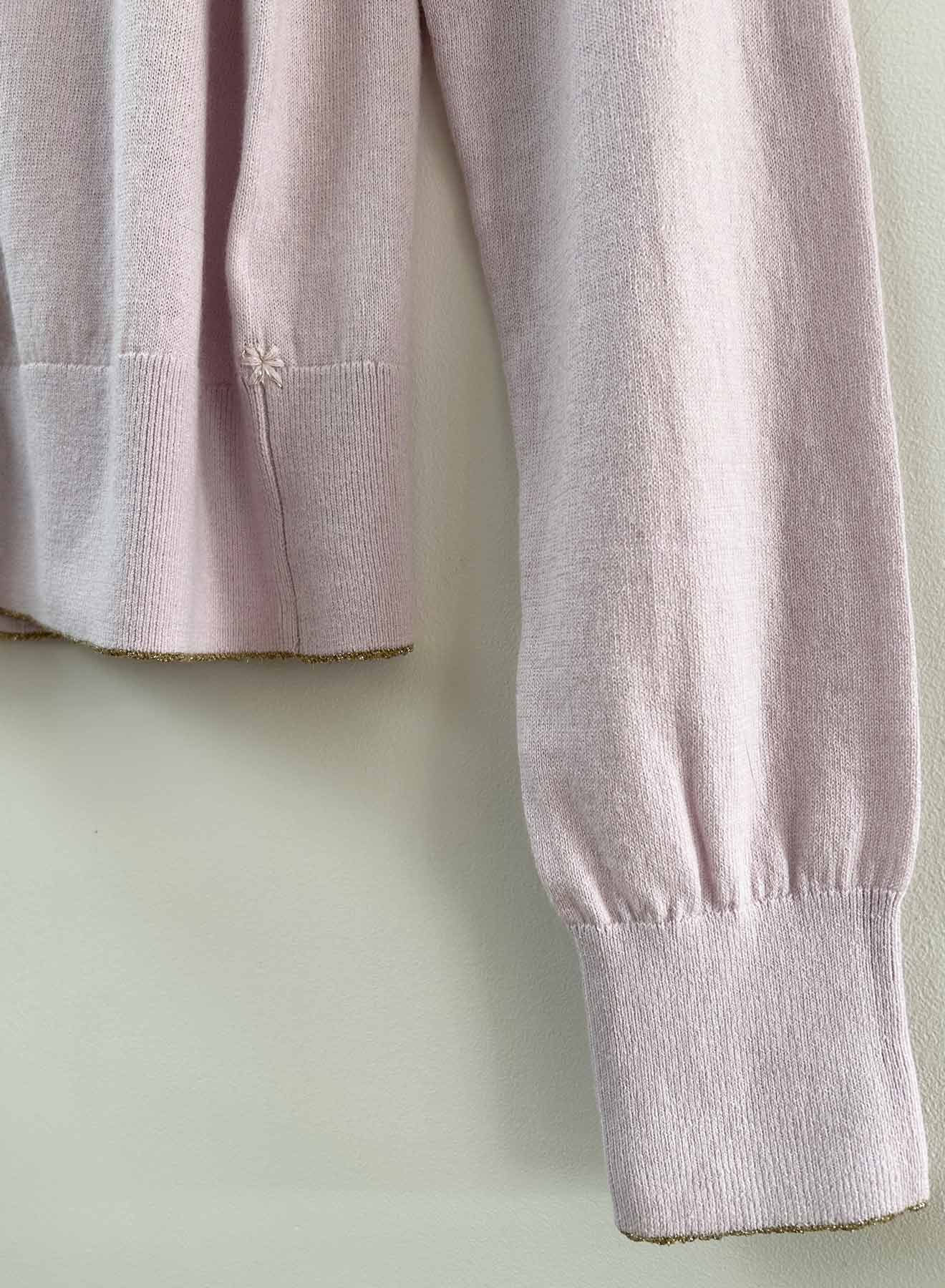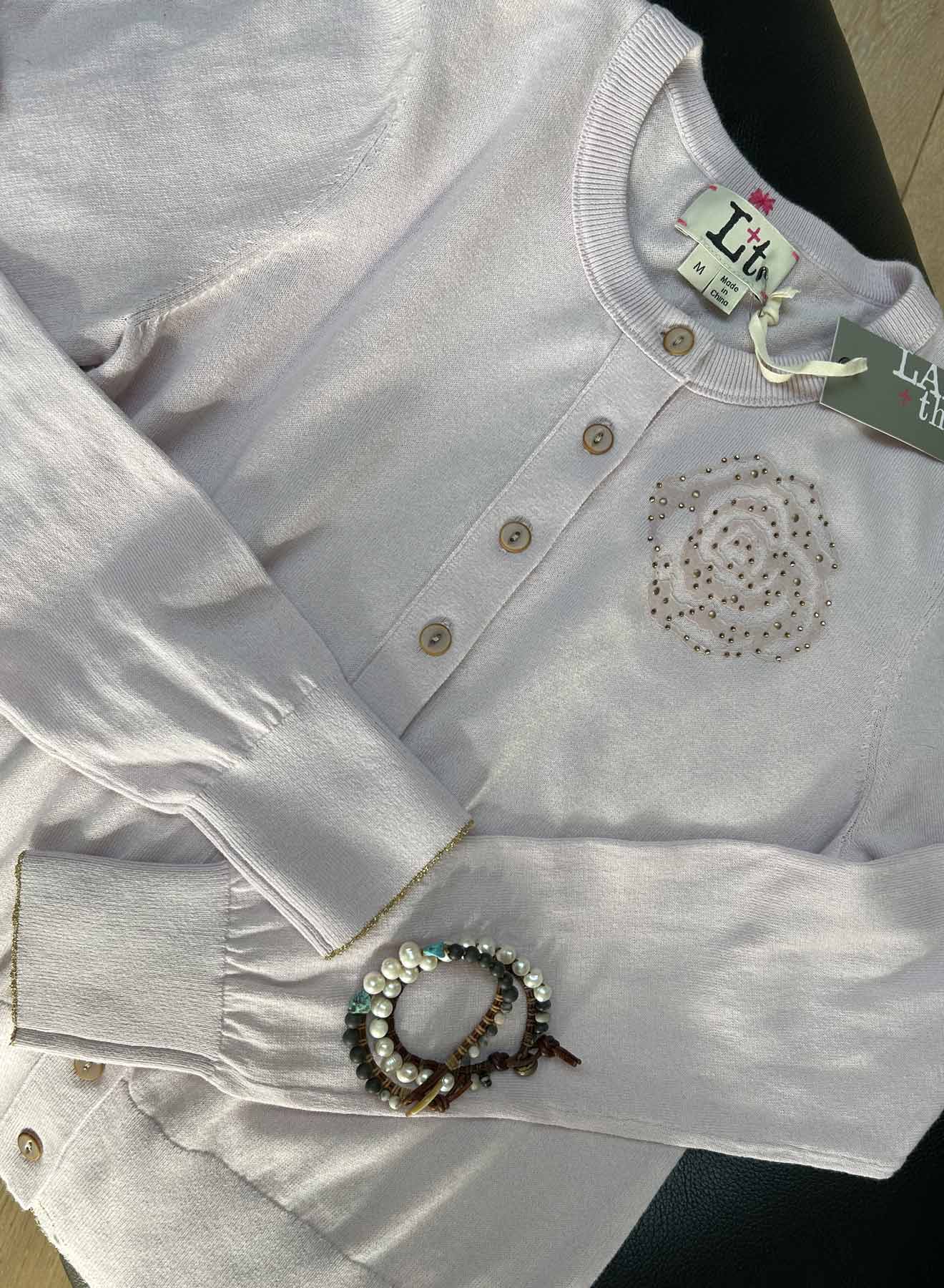 The Texas Rose Cardigan is the perfect party topper over skinny strap camis or over a simple white tee. Knit from our cotton cashmere blend. Slim, classic fit. Corozo nut buttons. Gold lurex tipping and a cut rose applique with mixed metal crystals on the chest. Leave the jewels at home and let the Texas Rose do the talking!